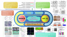 To understand the regulatory mechanism that caused NR2F1-AS1 overexpression in PC, we used Gene Ontology (GO) enrichment analysis to discover that NR2F1-AS1 was responsive to hypoxia (Fig. 7A). Notably, HIF-1α expression, a critical regulator of hypoxia, was positively correlated with NR2F1-AS1 (Fig. 7B). Thus, we next analyzed the NR2F1-AS1 promoter using the JASPAR database, which identified two HREs in the NR2F1-AS1 promoter region (Fig. 7C and Supplementary Table S5). Subsequent results revealed that NR2F1-AS1 and HIF-1α expression were raised remarkably by incubating PC cells in a hypoxic microenvironment treatment for 24 h (Fig. 7D, E and Supplementary Fig. S8A). Next, we transfected PC cells with three different siRNAs targeting HIF-1α, and the interference efficiencies were verified by qRT-PCR and western blot (Supplementary Fig. S8B–D). Moreover, qRT-PCR and RNA-FISH results demonstrated that HIF-1α knockdown obviously inhibited NR2F1-AS1 expression in both normoxia and hypoxia conditions (Fig. 7F, G and Supplementary Fig. S8E). Western blot assays confirmed that HIF-1α expression was decreased in HIF-1α-silenced cells (Fig. 7H and Supplementary Fig. S8F, G). Luciferase reporter assays showed that hypoxia significantly enhanced the transcription of NR2F1-AS1-WT, which was repressed by HIF-1α knockdown (Fig. 7I). These data elucidated that NR2F1-AS1 is a hypoxia-responsive lncRNA in PC cells.