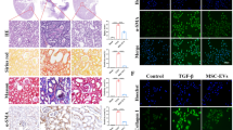 Renal tissue blocks were fixed in 4% paraformaldehyde, followed by conventional xylene dewaxing and gradient alcohol hydration. Antigen retrieval was carried out in 0.01 M citrate buffer solution. After the addition of goat serum sealing solution, 50 μL of diluted primary antibodies against Col4α1 (ab6586, 1:200), α-SMA (ab32575, 1:100) and collagen I (ab34710, 1:1000) were added to the blocks. Next, the tissue blocks were incubated with 50 μL of goat anti-rabbit to IgG (ab6728, 1:1000) at room temperature for 1 h. Streptavidin peroxidase was added to the tissues, which were allowed to rest for 30 min at 37 °C. After diaminobenzidine coloration, the tissues were counterstained with hematoxylin and finally observed under a microscope.