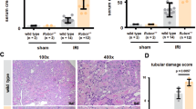 The technique has been previously described in detail [73]. Concisely, 8–12-week-old male mice were co-housed at 2–5 mice/ cage in IVCs in our facility under 12 h light circles. Induction of kidney IRI was performed via a midline abdominal incision and a bilateral renal pedicle clamping for either 36 min (severe IRI) or 30 min (moderate IRI) using microaneurysm clamps (FST). Throughout the surgical procedure, the body temperature was maintained between 36 °C and 37 °C by continuous monitoring using a temperature-controlled self-regulated heating system (Fine Science Tools). After the removal of the clamps, reperfusion of the kidneys was confirmed visually. The abdomen was closed in two layers using standard 6-0 sutures. Sham-operated mice underwent identical surgical procedures, except that microaneurysm clamps were not applied. To maintain fluid balance, all mice were supplemented with 1 mL of prewarmed PBS administered intraperitoneally directly after surgery. Mice were put back in cages in pairs of 2 and monitored closely. After 48 h, retro-orbital blood collection was performed, and mice were sacrificed by cervical dislocation. The right kidney was put in 4% formaldehyde for 24 h and then transferred to 70% ethanol for storage. Correspondingly, the left kidney was snap-frozen.