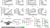 For eccentric exercise experiments, 3-month-old mice were acclimated to and trained on a 10° downhill treadmill for 2 days. On day 1, mice ran for 5 min at 8 m/min and on day 2 mice ran for 5 min at 8 m/min followed by 5 min at 10 m/min. On days 3–5, mice were subjected to a single bout of running starting at the speed of 10 m/min. Forty minutes later, the treadmill speed was increased at a rate of 1 m/min every 10 min for a total of 30 min and then increased at the rate of 1 m/min every 5 min until mice were exhausted. Exhaustion was defined as above. Total running time and total running distance were recorded for each mouse.