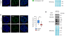 His-RAD18, His-RAD51C, Glutathione-S-transferase (GST) and GST-Ubb proteins were expressed in E. coli Transetta (DE3) cells. The cell pellets were sonicated in buffer (50āmM imidazole pH 6.8, 100āmM NaCl, 10āmM EDTA) for GST and GST-Ubb, buffer (20āmM HEPES pH 7.5, 300āmM NaCl, 1% Triton X-100, 1āmg/ml lysozyme) for RAD18 or buffer (50āmM NaH2PO4 pH 8.0, 300āmM NaCl, 10āmM imidazole pH 6.8, 2āmM ZnCl2, 1āmg/ml lysozyme) for RAD51C with 1āmM PMSF and 1āmM DTT. The supernatant was incubated with Glutathione Sepharose 4B beads or Ni-NTA agarose beads for 2āh, followed by washing with low salt (20āmM imidazole pH 6.8, 100āmM NaCl, 1āmM EDTA, 0.1% Triton X-100) and high salt (20āmM imidazole pH 6.8, 1000āmM NaCl, 1āmM EDTA, 0.1% Triton X-100) buffer. The bead-immobilized fusion proteins were stored in low salt buffer at 4ā°C. Purified proteins were incubated with the cell lysates expressing indicated constructs in HEPES buffer (50āmM HEPES pH 7.5, 150āmM NaCl, 1āmM EDTA, 1āmM EGTA, 10% glycerol, 1% Triton X-100, 25āmM NaF, 10āmM ZnCl2) at 4ā°C for 2āh. The reaction was terminated by boiling for 5āmin in an SDS sample buffer, and the proteins were resolved by SDS-PAGE, followed by immunoblotting with indicated antibodies.