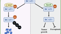 Increased BCAA metabolism is a characteristic feature of glioma [7]. BCAA metabolism encompasses two distinct pathways with divergent end products: one yields acyl-CoA derivatives, which subsequently participates in the tricarboxylic acid (TCA) cycle, while the other generates GSH for reactive oxygen species (ROS) scavenging [8]. BCAT1, a pivotal enzyme in BCAA metabolism, has emerged as a focal point in cancer research due to its diverse roles across various malignancies [9]. Jared et, al reported elevated BCAT1 expression in non-small cell lung cancer, and loss of BCAT1 impairs NSCLC tumor formation [10]. In acute myeloid leukemia stem cells, BCAT1 restricts α-ketoglutarate levels and induces DNA hypermethylation, thereby maintaining cancer stem cell function [11]. BCAT1 is also associated with cisplatin sensitivity in hepatocellular carcinoma via mTOR-mediated autophagy [12]. Notably, BCAT1 promotes cell proliferation in aggressive gliomas, and BCAT1 inhibition in combination with α-ketoglutarate triggers metabolic synthetic lethality in glioma cells [13, 14]. The intricate regulatory mechanisms governing BCAT1 expression include transcriptional factors such as c-Myc and HIF-1α [15, 16], and post-transcriptional regulation involving miR-124-3p [17]. Additionally, intracellular location of BCAT1 is regulated by phosphorylation and palmitoylation [18]. However, limited knowledge exists regarding the posttranslational regulation of BCAT1 expression.