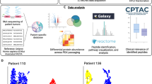 To generate customized databases, we conducted total RNA-Seq analyses, identifying 117,636 transcripts expressed in 70% of four replicates across cell lines. Among these transcripts, 1567, 2391, and 1780 transcripts were only identified in T1074, PEO-4 and SKOV-3 cells respectively (Supplementary Fig. 2A). Total RNA-seq data analysis showed that 37,197 transcripts were differentially expressed (DESeq2, FDR < 0.05). Hierarchical clustering (Supplementary Fig. 2B and Supplementary Table 1) indicated six main transcript clusters: upregulation in PEO-4 (cluster 1, 3117) in SKOV-3 (cluster 2, 3220), or in both cell lines (cluster 3, 1138 transcripts); and downregulation in SKOV-3 (cluster 4), in PEO-4 (cluster 5), and in both cancerous cell lines (cluster 6, 12,129 transcripts). Mapping RNA-Seq reads to the human genome Hg38 identified 29,245 expressed genes across the three cell lines. Among these, 420, 407 and 540 genes were specific for T1074, SKOV-3 and PEO-4 cells, respectively (Supplementary Fig. 3A). Supplementary Fig. 3B illustrates gene annotations, where the majority were non-coding (pseudogenes and lncRNAs, 60.9%), while ~ 37% were coding genes. Hierarchical clustering based on DESeq2 results identified 17,368 genes significantly expressed (Supplementary Fig. 3C and Supplementary Table 2), with 2142 and 1949 genes upregulated in PEO-4 and SKOV-3 cells, respectively. On the other hand, 3345 and 2692 genes were downregulated in PEO-4 and SKOV-3 cells respectively, while 632 genes were upregulated and 6608 downregulated between the two cancer cell lines.