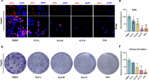 We evaluated the clinical significance of ferroptosis in PDAC. It has been established that platinum compounds promote ferroptosis through depleting glutathione (GSH) [46]. Ferroptosis inducer Erastin has been reported to facilitate the cytocidal effect of cisplatin and gemcitabine in PDAC cells [47]. At present, oxaliplatin, 5-FU, irinotecan, gemcitabine, and nab-paclitaxel are the cornerstone of chemotherapy for pancreatic cancer. KLF5 inhibitor ML264 sensitized PDAC cells to RSL3 (Fig. S5A) and Erastin (Fig. S5B). ML264 combined with oxaliplatin had the most significant combined cytotoxic effect (Fig. 7A–E). We further investigated whether KLF5 inhibitors could enhance sensitivity to oxaliplatin using cell proliferation and colony formation assays. CCK-8 assay results showed that treatment with either oxaliplatin or ML264 alone reduced cell growth, while their combination led to an even greater decrease in cell viability (Fig. S5C). Similarly, both oxaliplatin and ML264 individually suppressed colony formation in CFPAC-1 and Capan-1 cells, with ML264 significantly enhancing the inhibitory effect of oxaliplatin (Fig. S5D, E). We verified the effect of the combination of ML264 and oxaliplatin in vivo. The pancreatic xenograft tumors using CFPAC-1 cells revealed that a combination of ML264 and oxaliplatin inhibited tumor growth rate and size more than either drug alone (Fig. 7F, G) and resulted in the highest level of MDA (Fig. 7H). The results were confirmed in pancreatic xenograft tumors using Capan-1 cells (Fig. 7I–K). IHC staining using antibodies against KLF5 and the proliferation marker Ki-67 showed that ML264 combined with oxaliplatin resulted in greater suppression of Ki-67 staining than either drug alone (Fig. 7L). In PDX mouse models, the combination of oxaliplatin and ML264 significantly reduced tumor growth rate and size while increasing MDA levels compared to monotherapy (Fig. S5F, G). IHC staining with Ki-67 antibodies demonstrated that ML264 combined with oxaliplatin resulted in greater suppression of Ki-67 staining than either drug alone (Fig. S5H). These findings suggest that ML264 significantly enhances the cytotoxic effects of oxaliplatin. Furthermore, we investigated the expression of KLF5 in oxaliplatin-resistant (Oxa-R) cells. Previously established Oxa-R cell lines were revived and confirmed for drug resistance through cytotoxicity assays (Fig. S6A). qPCR and WB analyses revealed that KLF5 expression was upregulated in Oxa-R CFPAC-1 and Capan-1 cells (Fig. S6B). ML264 significantly increased the sensitivity of Oxa-R cells to oxaliplatin (Fig. S6C). CCK-8 assay results showed that both oxaliplatin and ML264 individually suppressed cell growth, with their combination further decreasing cell viability (Fig. S6D). Similarly, both agents alone inhibited colony formation in CFPAC-1 and Capan-1 cells, and ML264 significantly enhanced oxaliplatin’s inhibitory effects (Fig. S6E, F). These results indicate that KLF5 inhibition may help overcome acquired resistance to oxaliplatin.