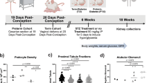 For flow cytometric analysis, cell suspensions of kidney tissue were made using Liberase digestion as previously described [29]. Briefly, kidneys were washed in cold PBS, minced finely and then shaken for 30 min at 37 °C in serum free RPMI medium containing 100 µg/ml Liberase (Roche, Basel, Switzerland) enzyme. Digestion was stopped by adding RPMI medium containing 10% fetal bovine serum, centrifuged, and resuspended in PBS. Cell debris was separated using Debris Removal Solution (Miltenyi Biotec, Bergisch Gladbach, Germany). Erythrocytes were lysed using RBC Lysis Buffer (eBioscience, San Diego, CA, USA) and washed with PBS. Samples were resuspended in Cell Staining Buffer (Biolegend, San Diego, CA, USA) and incubated in Fc Block (BD Biosciences, Franklin Lakes, NJ, USA) for 15 min prior to labeling with antibodies (Table S1) for 45 min. After washing, fixed cells were analyzed by flow cytometry using a BD LSRFortessa (BD Biosciences) instrument in Penn State College of Medicine’s Flow Cytometry Core (RRID:SCR_021134).