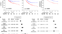 The tissue sections were placed in a 65 °C roaster for more than 2 h, deparaffinized in xylene, hydrated in gradient ethanol, and subsequently antigenically repaired using sodium citrate in an autoclave. The membranes were permeabilized with 0.3% Triton X-100 (Solarbio, T8200) followed by closure with 5% goat serum (Solarbio, SL038), and the sections were incubated with the primary antibody at 4 °C overnight. The expression of target proteins was detected after secondary antibody incubation with 3,3′-diaminobenzidine (DAB) solution according to the manufacturer’s instructions (ZSGB-BIO, Beijing, China). Independent scoring was performed by two professional pathologists in the following manner (immunoreaction score, IRS): The intensity of cell staining was graded into 4 levels, with no positive staining (negative) scoring 0, yellowish (weakly positive) scoring 1, brown-yellow (positive) scoring 2, and brown (strongly positive) scoring 3. The percentage of positive cells was graded into 4 levels, with ≤25% scoring 1, 26–50% scoring 2, 51–75% scoring 3, and >75% scoring 4, and the two scores were multiplied to arrive at the final scoring result. For the 60 tissue microarrays, we used ImageJ software with the IHC Profiler plug-in installed for the calculation of staining positivity [22]. The following four scores were given: high positive (3+), positive (2+), low positive (1+), and negative (0), which were multiplied by the corresponding percentage of the staining area and summed to obtain the final score.