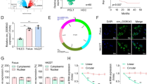 In the past, non-coding RNAs have always been the topic of research in the RNA field [9]. With the development of sequencing technology, circRNAs have received a lot of attention as a new type of non-coding RNA [10]. CircRNAs are more stable and do not easily degrade owing to their special closed-ring structure [11, 12]. CircRNAs are involved in a variety of physiological and pathological processes [13], and the abnormal regulation of circRNAs is related to many diseases [14,15,16]. For example, circNDUFB2 inhibits the progression of non-small cell lung cancer, and circSDHC promotes the progression and metastasis of renal cell carcinoma [17, 18]. Studies on the mechanism of circRNAs mainly focus on sponging microRNA (miRNA), interacting with RNA binding proteins (RBPs), and translating into peptides [19,20,21]. For example, circCUL2 regulates the malignant transformation and cisplatin resistance of gastric cancer by sponging mir-142-3p [22]. CircPCNX binds to and regulates the function of the RBP AUF1 and regulates cell proliferation [23]. Additionally, circSMO encodes 193aa and regulates the progression of glioblastoma [24]. In addition, circRNAs can be detected in body fluids; therefore, they are expected to become promising biomarkers [25]. However, it is not clear what role circRNA plays in HCC.
