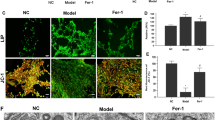 A–C The FTH1 and GPX4 protein levels were detected by western blot. Cell proliferation detected by the EdU assay kit was observed under a fluorescence microscope (D) and statistics as shown in (E). Lipid peroxidation levels detected by the C11 BODIPY assay kit were observed under a fluorescence microscope (F) and statistics as shown in (G). Intracellular GSH (H), MDA (I), and Fe2+ (J) contents were detected by corresponding assay kits. Data are expressed as mean ± SD (n = 6), * p < 0.05, **p < 0.01 indicate significant differences from each group, NS indicates no significance.