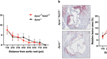 After euthanasia, the mice were perfused with saline through a left ventricle puncture. The heart and whole aorta were dissected from mice, and the adjoining tissues were removed. For assessment of the en face lesion area, the whole aorta was unfolded longitudinally and stained with Oil Red O. For analyses of atherosclerotic lesions in the aortic root, the upper portion of the heart and proximal aorta were separated carefully, and a series of 8 μm frozen sections were prepared and processed for Oil Red O, hematoxylin–eosin (HE), Masson staining, TUNEL staining and immunostaining of Caspase-1, NLRP3, IL-18, ICAM-1 and CD31 (endothelial cell marker) to detect cell death and activation of the aforementioned proteins in endothelial cells. Image-Pro Plus 7.0 software was used for quantitative analyses.