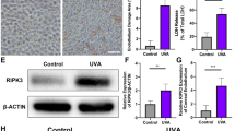 RIPK1 regulates cellular inflammation and death through various post-translational modifications. Notably, ubiquitylated RIPK1 induces cellular inflammation and promotes cell survival by activating the NF-κB signaling pathway, whereas the kinase activity of RIPK1 triggers cell necroptosis or apoptosis [32, 33]. Our investigations have revealed that as the intensity of UVB irradiation increased, the expression levels of both RIPK1 and IκBα proteins gradually declined in HaCaT cells, which infers that UVB activates NF-κB by modulating RIPK1 protein. It is worth noting that toll-like receptors (TLRs) are known to become activated, thereby promoting the activation of the NF-κB signaling pathway when cells are exposed to UVB. Such activation leads to the synthesis of inflammatory cytokines such as IL-1β, TNF-α, IL-6, among others [4, 34,35,36,37]. Our results also demonstrated an increase in the levels of IL-1β, TNF-α, and IL-6 in the supernatants of HaCaT cells following irradiation with 60 mJ/cm² UVB. However, the levels of these inflammatory factors, which were largely unaffected by RIPK1 kinase inhibition, were reversed following RIPK1 knockdown. These results suggest that UVB-induced inflammation may not be driven by RIPK1 activation but rather regulated by changes in RIPK1 protein levels.