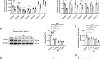 Mitochondrial CI activity was measured with cardiac tissues according to the manufacturer’s instructions (Solarbio, BC0515). CI catalyze the conversion of NADH to NAD+, and its enzymatic activity can be determined by measuring the rate of NADH oxidation, which is monitored by the decrease in absorbance at 340 nm. In brief, cardiac tissue was collected on ice, homogenized, and followed by centrifugation at 600 × g for 10 min and then at 11,000 × g for 15 min at 4 °C. The resulting sediment was treated with solution I and II followed by ultrasonication. The activity of CI was calculated based on detection at OD 340 nm by a microplate reader (Thermo Scientific Multiskan GO).