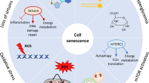 Cellular senescence is a complex process involving multiple molecular mechanisms. Briefly summarized below are the key molecular mechanisms involved. The normal cell cycle is regulated by a series of functional proteins. Cyclins are a class of proteins closely associated with the cell cycle, whose expression levels fluctuate in tandem with the stages of the cell cycle. They play a regulatory role in the cell cycle progression by binding to and activating specific protein kinases, such as p16. Notably, p16 directly interacts with CDK4/6, inhibiting their activities and exerting regulatory effects on the cell cycle [19]. The senescence-associated marker, p21, plays a crucial role in the normal cell cycle by inhibiting the activity of various cyclin-dependent kinases (CDKs). When cellular senescence is induced by different stimuli, the expression of p21 is consistently up-regulated. Its primary regulatory mechanism involves direct activation by p53, although other pathways, such as TGF-β, can also mediate this process [46,47,48,49]. During the normal cell cycle, the unbound retinoblastoma protein (Rb) is phosphorylated by CDK4/6 or CDK2 proteins. This phosphorylated Rb then activates and releases the transcription factor E2F, which serves as a key regulator in promoting progression from the G1 phase to the S phase. Conversely, when the cell cycle protein kinase inhibitors p16INK4A and p21Cip1 are highly expressed, they inhibit Rb phosphorylation mediated by CDK4/6 or CDK2, resulting in continuous binding between unbound Rb and E2F. As a consequence, E2F is unable to fulfill its role in regulating the cell cycle, leading to cell cycle arrest at the G1 phase [50,51,52]. During each round of DNA replication, telomeres gradually shorten as cell division progresses. Eventually, they reach a critical length that inhibits further replication, leading to the cessation of cell division. Additionally, shorter, uncapped telomeres elicit a DNA damage response (DDR), which subsequently induces cellular senescence. Sustained DNA damage triggers a DNA damage response (DDR), where double-stranded DNA breaks (DSBs) act as robust stimuli activating the DDR mechanism. Failure to promptly address this mechanism leads to cellular senescence. Moreover, DSBs facilitate the recruitment and binding of ATM kinases to DNA damage sites, ultimately inducing cell-cycle arrest and senescence through the activation of the p53/p21 and p16/pRb pathways [53, 54]. Over-activation of oncogenes, such as RAS, or inactivation of tumor suppressor genes, like PTEN, can also initiate DDR, resulting in cellular senescence known as oncogene-induced senescence (OIS) [55]. Certain components of SASP, which are released by senescent cells, also play a role in initiating cellular senescence. Forman and Zhang proposed that endogenous and exogenous stressors, originating from both mitochondrial and non-mitochondrial sources, can stimulate the production of reactive oxygen species [56]. During the initiation and progression of aging, ROS exerts a signaling function by directly instigating oxidative modifications in subcellular structures such as nucleic acids and enzymes. This activation subsequently leads to oncogene activation, DNA damage, and downregulation of telomerase activity [16]. Mitochondrial dysfunction is closely associated with the generation of reactive oxygen species, and both contribute to elevated oxidative damage, encompassing sulfhydryl oxidation, lipid peroxidation, and mutations in mitochondrial DNA [57, 58] (Fig. 2). Moreover, aging is accompanied by various epigenetic changes such as DNA methylation, histone acetylation, aberrant chromatin remodeling, and dysfunction of non-coding RNA [16]. In summary, the molecular mechanisms of cellular senescence are complex and diverse, primarily involving key signaling pathways and molecular events such as Replicative Senescence, stress-induced premature senescence (SIPS), OIS, SASP, epigenetic regulation, and metabolic alterations. However, the regulatory mechanisms of cellular senescence in CVDs involve multiple molecular events, primarily encompassing core pathways such as telomere shortening, mitochondrial dysfunction, ROS accumulation, genomic instability, epigenetic dysregulation, and protein misfolding. Within the molecular network of cardiac dysfunction, key signaling molecules—including the tumor suppressor p53, p38 mitogen-activated protein kinase (p38MAPK), p21WAF1/Cip1-activated kinases (PAKs), and the mammalian target of rapamycin (mTOR)—along with their mediated cascades, constitute the central hubs regulating cellular senescence and cardiac pathological processes. These details have been systematically elucidated in the review by Konstantinos Evangelou et al. Based on the aforementioned regulatory mechanisms, the subsequent sections will systematically elucidate the dynamic roles of cellular senescence in various CVDs, as well as its theoretical foundations as a therapeutic target.