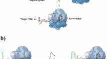 The CRISPR-Cas system is typically found only in prokaryote genomes, but the latest research shows that the genomes of giant bacteriophages also contain sequences encoding the CRISPR system39. CasΦ is one of the Cas protein family members encoded by giant phages, and it is only 70–80 kDa, only approximately one-half the size of Cas9 or Cas12a40. It can be used for effective gene editing in both human and plant cells. The deactivated CasΦ variant (dCasΦ) system, similar to dCas9, may also regulate the expression levels of target genes by fusing with transcriptional regulatory factors. The gRNA of the CasΦ system is very simple, including only one hairpin structure and an antisense sequence, which is very suitable for combination with riboswitches. Therefore, the compact CasΦ system provides new possibilities for optimizing the size of gene editors and CRISPR signal conductors.