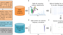 A total of 23 SARS-CoV-2 pseudo-viruses were used to evaluate the neutralizing antibody titers in the sera from immunized mice. The SARS-CoV-2 pseudotyped viruses used in the studies were constructed by using a vesicular stomatitis virus (VSV)-base system30,31,32,33. To evaluate the neutralization activities of the sera against these pseudo-viruses, the serum sample was serially diluted fivefold at the starting dilution of 1:40 with the cell culture medium (DMEM containing 10% Fetal Bovine Serum, 25 mM HEPES and 1% penicillin–streptomycin). The serially diluted serum samples were added to the well of the plate with 50 µL per well. The SARS-CoV-2 pseudo-virus was diluted 9 times with the cell culture medium to the titer of 1.3 × 104 TCID50 per mL and added into the well using 50 µL per well to mix with the serum, which was then incubated at 37 °C for 1 h. 50 µL per well medium was also mixed with the pseudo-virus as control. 100 µL per well medium served as blank. The HuH-7 cells were digested and suspended in the culture medium with a viable cell density of 2 × 105 per mL, which were then added into the well with 100 µL per well. After culture with 5% CO2 at 37 °C for 20–24 h, the culture medium was removed, the cells were lysed, and the luciferase activity was evaluated as the relative light unit value. The neutralizing antibody titer was determined as the reciprocal of the dilution of the serum for 50% neutralization of viral infection, which was calculated using the Reed–Muench method.