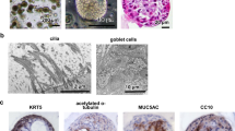 We have previously established human lung organoids directly from ASCs in normal lung tissues with a high success rate of over 90%. These lung organoids, consisting exclusively of epithelial cells, are stably expanded in the expansion medium for at least one year19,20,21. Since the dominant cell population in the airway epithelium, ciliated cells, were underrepresented in the lung organoids, we developed a proximal differentiation protocol and established three-dimensional (3D) and 2D airway organoids that morphologically and functionally simulate the human airway epithelium to a near-physiological level19. In this feeder-free culture system, the expansion medium enables initial derivation and long-term expansion of lung organoids by directing the organoids toward an immature state, while the proximal differentiation protocol generates epithelial domains faithfully phenocopying the native airway epithelium. These physiologically-active airway organoids have been used in various studies22,23, including modeling human airway epithelial cell interaction with viruses. We demonstrated that these differentiated airway organoids adequately reproduced the differential infectivity of influenza virus strains as manifested in virus surveillance19.