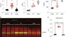 We found in Fig. 2 that only HMGCS2 in the liver and spleen was consistently expressed after birth. High abundance of HMGCS2 expression in liver is reasonable since liver is responsible for ketone body production in adult stage10. The postnatal spleen continues to develop and gradually improves its immune function33. After birth, aerobic respiration provides most of the energy required by the body. In this work, we found that ketone bodies are essential for mitochondrial maturation after birth. Moreover, a previous study found that ketone bodies can promote the development of memory T cells34. Thus, the persistent expression of HMGCS2 in the postnatal spleen may be related to the postnatal development of the spleen.