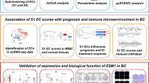 To explore whether the immunotherapy approach was applicable in SBC, we compared the tumor-infiltrated and human cell landscape (HCL) immune cells (Fig. 2d and Supplementary Fig. S4b)24. One of the highly expressed genes in infiltrated myeloid DCs was AXL, a key PD-L1 protein regulator capable of increasing PD-L1 protein expression25,26,27. As reported, DCs could potentially interact with multiple T-cell subsets via PD-1/PD-L1, leading us to compare the expression of PD-1/PD-L1 and its regulators in all immune cells28. Compared to the same type of immune cell in the HCL, the level of PD-L1 (CD274) was significantly elevated in T cells, monocytes, macrophages, and neutrophils (Supplementary Fig. S4b). Moreover, infiltrated macrophages showed higher levels of multiple PD-L1 regulators, including AXL, TLR3, and CD40 (Supplementary Fig. S4b). Our data suggested that PD-1/PD-L1 therapy might be a practical therapeutic approach in SBC (Supplementary Fig. S4c).