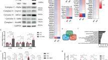 Western blotting was performed following standard protocols. The following primary antibodies reactive to mouse AIF (Abcam, ab32156, 1:1000), Complex I NDUFB6 (Abcam, ab110244, 1:1000), Complex I NDUFS3 (Abcam, ab110246, 1:1000), Complex I NDUFA9 (Abcam, ab14713, 1:1000), and β-actin (Sigma, F3022, 1:10,000) were used. For western blotting of human lung cancer cell lysates, we used primary antibodies specific for AIFM1 (human AIF, 4642 S, Cell Signaling Technology), CHCHD4 (HPA034688, Prestige Antibodies, Sigma-Aldrich), MitoProfile Total OXPHOS Human WB Antibody Cocktail (ab110411, Abcam) containing 5 mAbs against Complex I subunit NDUFB8 (ab110242), NDUFS7 (ab105025), NDUFA12 (ab192617), Complex II subunit SDHB (ab14714), Complex III subunit UQCRC2 (ab14745), Complex IV subunit II (ab110258), and ATP synthase subunit α as a marker for complex V (ab14748), and β-actin-HRP (mouse monoclonal, AC-15, ab49900, Abcam) as a loading control. Membranes were incubated overnight with the primary antibodies at 4 °C (diluted in 2.5% BSA in 1× TBST buffer), washed three times in TBST for 15 min each and probed with horseradish peroxidase-conjugated secondary Abs (1:5000, Promega) at room temperature for 1 h. Ab binding was visualized by enhanced chemiluminescence (GE Healthcare, RPN2106). When needed, membranes were incubated in stripping solution Restore™ PLUS Western Blot Stripping Buffer for 10 min and re-blotted according to the manufacturer’s instructions. Densitometry was conducted employing ImageJ and using β-actin to normalize for protein expression.