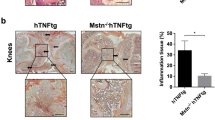 Cardiotoxin extracted from Naja mossambica mossambica was injected into the tibialis anterior, quadriceps and gastrocnemius muscles of one mouse hind limb (Sigma Cat. #C9759; 10 µg/injection). The contralateral limb was injected with saline and served as a control. Tissues were harvested 7 days after cardiotoxin administration and were then stained with hematoxylin and eosin.