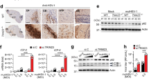 Extracts from cultured cells were prepared in lysis buffer (50 mM Tris-HCl (pH 7.4), 150 mM NaCl, 1% Triton X-100, 1 mM EDTA) supplemented with complete protease inhibitor cocktail (Sigma) for 30 min at 4 °C. Extracts from tissues were prepared in RIPA lysis buffer (Beyotime). Then, the lysates were separated by SDS-PAGE and electrophoretically transferred to a PVDF membrane (Millipore). The membrane was probed first with the indicated primary antibodies overnight at 4 °C and then with horseradish peroxidase-conjugated secondary antibodies for 1 h, and immunoreactions were then visualized by using a SuperSignal West Pico Chemiluminescence ECL kit (Pierce). The band intensities on the blots were quantified with ImageJ software.