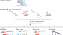 Mucosal protection in the nasal turbinates is thought to be linked with the ability of vaccines to elicit antiviral IgA. Accordingly, mucosal IgA production is associated with SARS-CoV-2 protection following mRNA vaccination and prior SARS-CoV-2 infection [91,92,93,94,95,96]. Eliciting mucosal IgA is one reason intranasal vaccination approaches gained intense interest during the COVID-19 pandemic [97, 98], though parenteral immunizations have also been shown to induce mucosal antibodies in some cases [77, 91, 92]. While there are clearly important roles for secretory IgA in protection against mucosal pathogens, our recent work has shown that IgA production is not needed to protect the olfactory mucosa against viral rechallenge [84]. These data suggest that rather than a specific antibody isotype, the most important correlate for protecting the olfactory mucosa is local antibody production. This is in agreement with recent data that IgG antibodies can be detected in nasal secretions and may play a role in protection against SARS-CoV-2 [65, 83, 95, 99, 100].