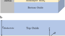 The current through the SB is mainly contributed by two types of carriers: (i) thermionic emission carriers and (ii) tunneling carriers. To extract the true SB, it is very important to evaluate the flat-band gate voltage (VFB), which separates the dominance of the thermionic emission current and tunneling current. For Vg < VFB, the current is predominantly contributed by thermionic emission carriers, while for Vg > VFB, the tunneling current starts contributing increasingly. It is expected that the SBH shows a linear dependence on Vg when Vg < VFB and starts deviating from the linear response when Vg > VFB19. The SBH at the point where it starts deviating from the linearity is the true SBH and is called the flat-band SBH (e\(\phi\)FB). The Vg dependence of the SBH is plotted in Fig. 4c, d for devices A and B, respectively. The SBH shows a linear dependence at lower values of Vg and starts deviating at higher Vg. The flat-band SBHs extracted from Fig. 4c, d are 10.2 and 9.6 meV for devices A and B, respectively. The observed values are the smallest SBHs reported thus far using any metal contacts in monolayer MoS2 FETs. It can be noted that the SBH for device A (electrodes with a Pt bottom layer) is larger than that for device B (electrodes with a Co bottom layer). To the best of our knowledge, this is the first report on employing PMA electrodes in monolayer MoS2 FETs. One can note that the values of SBHs reported in Co/monolayer-MoS220 and Pt/few layer-MoS219 are 38 and 230 meV, respectively. The possible reason for the low SBH in our multilayer electrodes can be explained as follows. As we know, a single layer of Co is ferromagnetic with an in-plane magnetic easy axis. In a [Co/Pt] multilayer, the strong spin–orbit interaction (SOI) in Pt helps to develop PMA in Pt/Co multilayer structures. Pt possesses magnetism due to the proximity effect, and its magnetism also exhibits PMA. Here, Pt is famous for being a low-carrier-density metal (whereas Co is not), and in fact, the carrier density of Pt was reported to be 6 × 1021 cm−3 in experiments (please see, for example, Fan et al.21 and Dushenko et al.22; as a representative theoretical work, please see Fischer et al.23). Hence, for the combination of Co and Pt under equilibrium, carrier diffusion between Pt and Co layers occurs (the carrier diffusion is most likely from Co to Pt), which results in realignment of the Fermi levels of Pt and Co. Therefore, the effective work function of the [Pt/Co] multilayer structure can be different from their individual work functions (depending on the difference in the Fermi levels of Co and Pt before equilibrium). It has also been reported that various multilayer and bilayer stacks are sufficient to shift the work function of the interface metal24. Furthermore, as an example of modulation of the physical properties of Pt by carrier density modulation, we note the SOI modulation of Pt by carrier doping (increase of the carrier density by ionic gating), resulting in suppression of the inverse spin Hall effect in Pt22. Because even the SOI can be controlled by modulation of the electronic states due to charge transfer, the work function, which is more strongly related to the electronic states of condensed matter, can be modulated. Hence, given that carrier flow from the Co to the Pt in the [Co/Pt] multilayer occurs for equilibrium and the electronic states of the Pt are largely modulated by it, the work function of [Co/Pt] can be largely modulated in the formation of the multilayer, which can be the physics behind the formation of the low SBH. Moreover, it is worth mentioning that the MoS2 channels in previous reports were obtained by exfoliation from bulk single crystals. CVD-grown MoS2 channels directly grown on the substrate with better interface quality with metal electrodes can also result in a change in the SBH compared to exfoliated channels. Exfoliation/transfer of MoS2 can induce contamination and surface distortion, which may result in a change in the electrical properties of monolayer MoS2 due to chemical disorder and defect-induced gap states resulting in Fermi level pinning25. A comparison of SBHs at various ferromagnetic/nonmagnetic metal contacts with monolayer MoS2 is shown in Table 1. By examining the nature of the PMA/MoS2 contacts of both types of electrodes, we observe that Co bottom layer electrodes are a better choice for the integration of PMA electrodes into next-generation valleytronic/spintronic devices. These electrodes show smaller zero-gate and flat-band SBHs than Pt bottom layer electrodes. Furthermore, the Pt layer at the interface might work as a spin absorber, which limits the detection of spin-valley polarization. In device B, the SBH approaches zero with very small gate voltage application, which is remarkable and makes Co bottom layer PMA electrodes the best choice for the contacts in monolayer MoS2 devices. The results are reproduced in other devices, as shown in Figs. S6 and S7 in the Supplementary information. We anticipate that the development of PMA electrodes with a negligible SB would open a way to exploit valley properties in 2D TMDs and will have a significant impact on the improvement of spintronic/valleytronic technologies.
