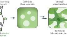 Physically crosslinked elastin-like hydrogels were also constructed via LLPS. For example, (VPGXG)90 (X: V, G, A at a ratio of 5: 3: 2) coacervated at 37 °C formed a gel-like phase with a complex modulus |G*| of 80 Pa [44]. Chondrocytes cultured in the gel-like phase maintained their phenotype. Amphiphilic ELP block copolymers with different temperature responses between the blocks were used to obtain a more continuous gel phase [45, 46]. The excellent blood-contacting properties of the block ELP were demonstrated in a primate arteriovenous shunt model [47]. These hydrogels elicited a minimal inflammatory response and displayed robust stability in vivo for more than a year [48].