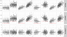 Mean SMA was 173.6 ± 25.1 cm2 with a p5 of 134.0 cm2 in men and 113.4 ± 15.2 cm2 with a p5 of 89.2 cm2 in women. Other percentiles and percentiles for the subgroup of individuals aged 20–60 years are shown in Table 2. SMA was lower with increasing age (R 2 = 0.128, p < 0.001 in men and R 2 = 0.210, p < 0.001 in women). There was a significant positive correlation between BMI and SMA, which was stronger in men (R 2 = 0.195) than in women (R 2 = 0.058). Scatter plots of age and SMA and of BMI and SMA are included as supplementary material (Supplementary Fig. 1). In men, there was no interaction between age and BMI (p = 0.390), while in women there was an interaction (p = 0.001), indicating a stronger negative correlation between age and SMA with increasing BMI and a less strong correlation between BMI and SMA with increasing age. When age and BMI were included in the multivariate regression model (including the interaction term for women), explained variance (R 2) was 0.326 in men and 0.335 in women. Age and BMI specific lower limits of SMA are presented in Table 3.
