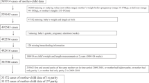 Participant characteristics and outcomes were reported using descriptive statistics. The data were tested for normal distribution using the Kolmogorov–Smirnov test. Parametric and nonparametric tests were employed accordingly. The trend of change in body weight, BMI, and maternal age during the years 1995–7 and 2004–17 was analyzed using regression analysis. The year-chronological evaluation regarding maternal body weight development data was compared with the Mann–Whitney U test regarding parity, BMI-allocation, and mothers age. BMI was categorized into normal weight and obese. The parity was categorized into nullipara, one and two or more previous deliveries. For categorical variables, odd ratios were analyzed. The level of significance was defined with a p < 0.05. The statistical analysis was performed using IBM SPSS Statistics for Windows, Version 26.0. Armonk, NY.