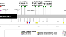 In this study, we present a novel cohort consisting of 19 males (from 17 unrelated families) with rare hemizygous (possibly) disease-causing variants in DDX3X. We also reviewed the existing literature and found seven articles which in total described 16 male probands with DDX3X variants [3, 7,8,9, 14, 18, 19]. To enable a reliable overview of clinical features, we excluded three individuals from the previous literature carrying variants with low certainty of pathogenicity (p.(Ala9Val), p.(Arg79Lys) and p.(Arg110His)). In Table 1, we provide a consolidated clinical summary encompassing both cohorts (n = 32). Additionally, facial photos and pedigrees of males from our novel cohort are presented in Fig. 1. All variants identified in our novel cohort and previous literature are listed in Table 2 and Fig. 2. In the subsequent paragraphs, we will mainly focus on the males from our novel cohort.