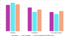 Rodriguez-Fitzpatrick S, Gonzalez A, Dudar B, Oyoyo U, Kwon SR. Dental Students’ Knowledge, Attitude, and Confidence toward Evidence-based Dentistry: A 5-year Retrospective Study. J Contemp Dent Pract. 2022;23:1146–9.