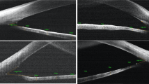 In our current study, the SC diameter and area were decreased significantly with aging, which was in partial agreement with previous histopathologic SC studies performed on donor eyes [12, 13], and SC was observable in only 80.6% of eyes from the older group (60–83 years). We speculate that the decreased SC size and lower SC detection rates in older subjects might be caused by several reasons. First, the main SC structures affected by aging included a reduced density of giant vacuoles and diminished intracellular and intercellular pore populations [13, 14]; SC degeneration itself may lead to SC shrinkage. Second, age-related loss in ciliary muscle movement and an altered limbal corneoscleral contour [15, 16] may lead to diminished traction on SC. Third, as aqueous production decreases with age [17], a presumably lower flow into SC will result in a reduced SC size.