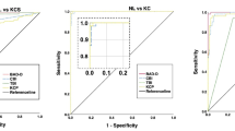 Aslankurt et al. compared 52 eyes of children with Down syndrome to 60 eyes of normal children regarding early topographic changes. They found that ISV had the highest sensitivity for subclinical KC (AUROC = 0.887) [24]. In the current study, although the ISV AUROC was 0.875, which is good and comparable to the results of Aslankurt, it was still significantly inferior to CAIRO 8 (P = 0.001). The ISV reflects the variation of the corneal radii of curvature compared with the mean value. Therefore, it is simply a non-specific expression of the surface curvature irregularity, including non-ectatic high-corneal astigmatism [18, 31].