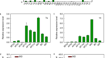 Approximately 1 µg of total RNA was used to synthesize the first strand of cDNA using TransScript One-Step gDNA Removal and cDNA Synthesis SuperMix (TRANS, Beijing, China) following the manufacturer’s instructions. qRT-PCR was performed in 20 µL reaction containing 1× SYBR Green II Master Mix (Takara, Dalian, China), 0.2 µM of each primer, and 0.5 µL of template cDNA. The qRT-PCR amplifications were performed using the Applied Biosystems 7500 Real-Time PCR System (Applied Biosystems, USA), and the reaction program was set as follows: 95 °C for 1 min, one cycle; and 95 °C for 5 s, 60 °C for 34 s, 40 cycles. Melting curve analysis was performed at the end of 40 cycles by heating from 55 to 95 °C at a rate of 0.5 °C/s. An apple polymer ubiquitin enzyme gene (UBQ) was selected as a constitute control40. The relative expression level of all detected genes was calculated according to the cycle threshold 2−ΔΔCT method. All analyses were performed in triplicates. The primer sequences are listed in Table S2.