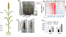 As described previously3,45, soluble sugars and hexose phosphates were extracted in 75% methanol with ribitol added as an internal standard and then derivatized sequentially with methoxyamine hydrochloride and N-methyl-N-trimethylsilyl-trifluoroacetamide. After derivatization, the metabolites were analyzed with an Agilent 7890 A GC/5975C MS system (Agilent Technology, Palo Alto, CA, USA) on a DB-5MS capillary column (20 m × 0.18 mm × 0.18 µm) with a 5 m Duraguard column (Agilent Technology). The tissue residue after 75% methanol extraction for gas chromatography–mass spectrometry analysis was re-extracted three times with 80% (v/v) ethanol at 80 °C, and the pellet was retained for enzymatic determination of starch as glucose equivalents3.