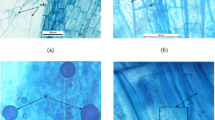 Root samples of the poplar seedlings were collected 3 months after the plants were inoculated with AMF, washed with sterile water, and stained with 0.008% trypan blue as previously described13,51. Mycorrhizal colonization was evaluated under a low-power compound microscope, and the occurrence of spores or arbuscules on the root segments indicated successful colonization. Each group had four replicates, with at least 50 root segments observed for each replicate. The percent mycorrhizal infection was calculated using the following formula and analyzed using an independent sample t test (SPSS 19.0 for Windows) at α = 0.05. Mycorrhizal infection (%) = 100 × Number of infected root segments/Total number of root segments observed.