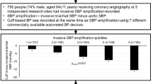 High blood pressure (BP) is the leading global risk factor for death and disability [1]. High-quality BP measurement is essential for correct hypertension diagnosis and management, and for this purpose, automated upper-arm cuff BP measurement devices are the recommended clinical standard [2,3,4]. These devices are supposed to emulate the BP values recorded by manual auscultation as an indirect measure of invasive BP [5]. However, meta-analyses of individual patient data have shown that automated cuff BP measurement devices have a significant level of both random and systematic error when compared with invasive BP measurement at the brachial or central aortic arteries [6]. Systematic error is associated with increasing age (cuff systolic BP underestimation and diastolic BP overestimation) and sex (underestimation of cuff systolic BP in women) and random error occurs between different devices [7, 8]. The cause of differences between automated cuff BP and invasive BP have not been fully determined but are essential to understand so that the quality of clinical BP measurement and risk stratification can be improved.