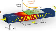 The signal light from a CW 1574.8-nm-wavelength laser was sent into the integrated FNW–SW devices via input gratings. A 405-nm-wavelength CW laser was mechanically chopped to generate switch pulses, which were coupled into a tapered fiber probe to illuminate the target areas of the circuits for optical modulation (Supplementary Note 6). Modulated output was collected by a photodetector and measured by an oscilloscope.
