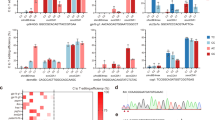 The p.E75K mutation in twist2 was previously reported to be the causative mutation of ablepharon macrostomia syndrome (AMS)13. Notably, the conversion of C-T in twist2–2 induced a p.E78K amino-acid change, precisely mimicking the p.E75K mutation found in human (Fig. 1e). Sequencing results showed that 2 out of 21 colonies carried C→T conversion (Fig. 1f). The p.E78K mutation in twist2–2 was transmitted to the next generation with efficiency of 7.7% (2/26). These results indicate that a zebrafish AMS model precisely mimicking the human mutation can be achieved, suggesting the potential of this system to develop animal models for human disease. Taken together, these data show that base-edited zebrafish can be efficiently generated using this BE-gRNA system.