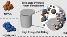 Based on Eqs. (1) and (2), the theoretical specific capacity and volume change of CaV4O9 can be calculated. Assuming that CaV4O9 is fully reacted in the initial sodiation process, as shown in Eq. (1), four electrons are transferred when V4+ is converted to V3+, and the corresponding capacity is 276.4 mAh g–1. Note that the average capacity of CVO-550 at 100 mA g−1 reaches 331.5 mAh g–1 during stage II (Fig. 3c), which is higher than the calculated value. This is because Na+ insertion also leads to the formation of an amorphous phase (as evidenced by the ex situ TEM results) in addition to NaVO2 and CaO nanograins, and the amorphous region provides additional active sites (such as vacant sites or void spaces) for Na ions42, 61, resulting in the higher capacity. The capacity of CVO-450 is higher than that of CVO-550 at different current densities. The extra capacity can be attributed to the residual water in the nanowires. As described before, the nanowire samples contain considerable crystal water (~6.2%) before annealing (Supplementary Figs. 4–6). As indicated by the XRD and FT-IR results (Supplementary Fig. 5a, c), the crystal water was still not fully removed for CVO-400 (annealed at 400 °C); thus, it is reasonable that there is minor residual water in CVO-450. As reported by Grey’s group56, residual water or OH groups can act as a major source of additional capacity. However, residual water also leads to the consumption and decomposition of the electrolyte and does not benefit the long-term cycle life of the batteries, which explains why CVO-450 has inferior cycling stability compared to CVO-550 (Fig. 3d). To further confirm this point, CVO-400 was also tested as electrode and compared with CVO-450 and CVO-550. As expected, the CVO-400 exhibits higher initial capacity but much poorer cycling stability (Supplementary Fig. 17).