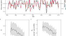 Note that we use the shorter parts per million (ppm) notation as units for W i , which is the equivalent of the mole fraction (µmol mol−1). The sub-fossil δ13C data from Pinus from Helama et al.39 originated between 5630 BC and 1930 AD, and to calculate W i for these trees we assumed a constant, pre-industrial atmospheric CO2 level of 280 ppm and δ13Cair of −6.4‰ based on Francey et al.70. Slight temporal variations in CO2 and δ13Cair during this period will not cause any systematic bias in the calculation of development trends in W i as the trees represent an average from very different time periods (Helama et al.39).