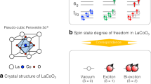Figures 2a–c show energy-momentum maps of the scattering intensity along Q = (1/3, 1/3, L) and (1/2, 1/2, L) measured with E i = 3.14 and 7.74 meV. The low-energy excitations for Q = (1/3, 1/3, L) are dispersive, while all the excitations for Q = (1/2, 1/2, L) are almost independent of L. This indicates that the interlayer exchange interaction is small and does not affect the excitations above 1 meV. Because the low-energy excitations in the vicinity of the K point can be described by LSWT, as shown below, we evaluate the interlayer exchange interaction \(J'\) by applying LSWT to the dispersion curves of the single-magnon excitations for Q = (1/3, 1/3, L). The solid lines in Fig. 2a are fits with \(J'\) = 0.080 meV, with J and Δ fixed at J = 1.67 meV and Δ = 0.04618, which were determined from the analysis of the saturation field H s = 32.5 T with the g-factor of 3.85 and the zero-field ESR gap of 0.68 meV that corresponds to the excitation gap at Q = (1/3, 1/3, ± 1)17, 18. Low-energy single-magnon excitations for Q = (1/3, 1/3, L) are well described by LSWT with these exchange parameters. Because both the interlayer exchange interaction and the anisotropy of the exchange interaction are less than 5% of J and magnetic excitations above 1 meV are almost dispersionless along the c * direction as shown in Fig. 2b, c, we can deduce that all the excitations except the low-energy excitations near the K point can be attributed to the 2D spin-1/2 TLHAF.
