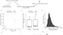 Colocalization analysis was conducted using the R package coloc17. The method requires summary statistics for each SNP, which were summarized in Pickrell et al.43 or downloaded from ImmunoBase (http://www.immunobase.org) along with our eQTL data. A list of GWAS traits used in this analysis is provided in Supplementary Data 3. Coloc uses summary data from eQTL and GWAS studies in a Bayesian framework to identify GWAS signals that colocalize with eQTLs. We ran coloc using default parameter settings and a colocalization prior p 12 = 10−6. Coloc estimates posterior probability of association for either trait (PP0), association with gene expression (PP1), association with the trait (PP2), association with both phenotypes but distinct causal variants (PP3) and association with both phenotypes sharing the same causal variant (PP4). Regions with evidence for colocalization between gene expression and trait were defined as PP3 + PP4 ≥ 0.90 and PP4/PP3 ≥ 3 similar to what has been proposed by Guo et al.44 and are illustrated in Fig. 4a.