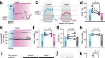 Ca2+ channel activation in vascular smooth muscle cells. a, b Membrane potential measurements from freshly isolated endothelium of second-order mesenteric arteries. a Example traces from the control and Piezo1ΔEC genotypes in the absence of Gd3+ and the control genotype in the presence of 10 μM Gd3+. Endothelium was exposed to flow at 20 μl s−1. b As for a but individual data points for the three independent experiments shown as symbols. Control genotype: no flow −46.3 ± 2.4 mV vs flow −38.4 ± 2.1 mV (***). Control genotype in Gd3+: no flow −60.1 ± 3.1 mV vs flow −56.5 ± 3.3 mV (***). Piezo1ΔEC genotype: no flow −59.5 ± 2.3 mV vs flow −60.7 ± 2.5 mV (*). c As for a, b but a separate series of experiments in which endothelium was exposed to increasing flow in the absence of Gd3+ for control (n = 10) and Piezo1ΔEC (n = 6) genotypes. d Example current recordings from vascular smooth muscle cells (VSMC) freshly isolated from second-order mesenteric artery. Square-step depolarizations were applied at the time of the arrow from a holding voltage of −80 mV to the test voltage indicated. Linear leak and capacitance currents were subtracted. e Mean data for peak VSMC inward currents of the type exemplified in d (current, n = 8). Superimposed in grey are endothelial shear stress values calculated from the control genotype data in c. Membrane potential for the highest shear stress was obtained by extrapolation based on a least-squares fit of the Hill equation. Averaged data are displayed as mean ± s.e.m. Data sets are compared by t-test. Statistical significance is indicated by ***P < 0.001