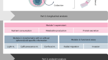 35 chips were analyzed for a total amount of 10,113 spheroids. 11 chips were stained with LIVE/DEAD, 19 chips for DAPI and ALB and 5 chips for DAPI and BrdU. For the population-level comparison between 2D and 3D conditions (Fig. 2d–f), statistical significance was assessed by unpaired two-sample two-tailed Student’s t-tests. For the spheroid-level and cellular-level data analysis, significance was assessed either by Welch’s ANOVA followed by Games-Howell post hoc procedure (Fig. 3c, e, h) or a Welch’s t-test (Supplementary Fig. 9c, 11c). For non-normal distributions, significance was tested using Kruskal–Wallis ANOVA followed by Mann–Whitney U-tests with Sidak’s correction for multiple comparisons (Fig. 3a, b, Fig. 5c, e and Supplementary Fig. 10). *p < 0.05, **p < 0.01, ***p < 0.001, were considered statistically significant. N.S.: non-significant. p-value ranges are only indicated for the highlighted comparisons.