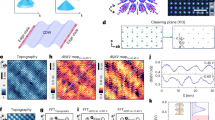 Calculated band structures based on the GGA method for 1-TL and bulk TiTe2 in the normal phase (Fig. 1d) are fairly similar. The bulk case appears more complicated because of the additional dispersion in the layer-stacking direction. For 1-TL specifically, the top of the valance bands, dominated by the Ti 3d states, is located at the zone center \(\overline \Gamma \). The bottom of the conduction band, also dominated by the Ti 3d states, is located at the zone boundary \(\overline {\rm{M}} \). The two band edges are separated by a negative gap of about 0.5 eV, and the system is a semimetal. Bands of a 1-TL sample as observed by ARPES (Fig. 1e) at 150 and 10 K compare well with the calculated 1-TL band structure. The results are generally consistent with prior studies where available10,11,12, and all calculated band features are observed in the ARPES map. The 10 K data are sharper due to a reduced thermal broadening. Importantly, the 10 K data show additionally a weak replica of the valence bands shifted from \(\overline \Gamma \) to \(\overline {\rm{M}} \). The replica bands overlap with the intense conduction band and are most obvious just below the conduction band, as indicated by an arrow. This band replication suggests a (2 × 2) folding and CDW superlattice formation at 10 K.