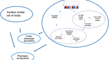 Our main effect filtering method yielded 3 models with uncorrected LRT p values less than 0.0001 (Fig. 4a). No models were significant when requiring a Bonferroni correction (α: 0.05, 32,640 pairwise SNP–SNP models derived from the PubMed SNP list) or FDR. The top model involved SNPs rs3123108 in ezrin (EZR) and rs624947 in LDL receptor related protein 5 (LRP5) (uncorrected LRT p value: 1.86 × 10−5). Supplementary Data 7 includes all results for the main effect analysis. Biofilter created 404 SNP–SNP models using the PubMed SNP input. Of these, 2 models met a Bonferroni corrected LRT p value < 0.05 (Fig. 4b). The top model included SNPs rs2241165 in GAD1 and rs876848 near GAD2 (uncorrected LRT p value: 3.54 × 10−5; Bonferroni: 0.014; FDR: 0.011). Supplementary Data 8 includes all results from the Biofilter interaction analyses.
