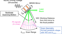 The wild-type zebrafish embryos were raised and cared for by the zebrafish facility at Washington University in St. Louis. We were authorized to handle the living fish under a recently developed protocol (Protocol Number: 20160109). All experimental animal procedures were carried out in conformity with the laboratory animal protocol approved by the Animal Studies Committee of Washington University in St. Louis. Several 3-day-old embryos were imaged in our experiments. Before the experiments, the zebrafish larvae were kept in saline water at 28.5 °C and anaesthetized using (0.5–2.0 mg ml−1) tricaine (MS-222, Western Chemical, Inc.)30. Next, they were carefully moved and placed on angled slide glasses using a pipette, so that tilted fish with an extended depth range were prepared for imaging. The fish were immobilized with melted agarose (2%; Sigma-Aldrich, Corp.). Then the slide glass was moved into a plastic culture dish that served as a water tank for acoustic coupling. This preparation minimized the movement of the zebrafish larvae during the experiments, while keeping them alive.