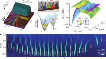 QD arrays generated by single-wall (SW) and double-wall (DW) nanoporous networks that confine the surface 2DEG. a, b Schematic representations of the concept behind SW and DW networks. c, d Chemical structures and electrostatic potential maps of Br-DNT and Br-DNF. e, f Large-scale STM topographies for the SW network with Br-DNT and the DW network with Br-DNF. Insets show close-views of each network. g, h High resolution atomic force microscopy (AFM) images of the SW network and DW network. Measurement parameters: tunneling current I = 5 pA, bias voltage V = 200 mV (e, f); V = 0 mV, oscillation amplitude A = 60 pm (g, h).