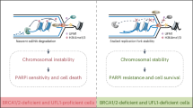Cell lines: the human osteosarcoma U2OS cells (American Type Culture Collection), BRCA2-mutant ovarian cancer cells PEO1 (and the isogenic PEO4 cells, which contain a second point mutation restoring BRCA2 function) (provided by Dr. Lee Zou, Harvard Medical School)44, Fanconi anemia BRCA2-mutant line EUFA423 (and its derivative expressing wild-type BRCA2) (provided by Dr. Douglas Bishop, University of Chicago)45, BRCA1 mutant ovarian cancer cell line UWB1.289 (and its complemented derivative expressing wild-type BRCA1) (provided by Dr. Lee Zou, Harvard Medical School)46. U2OS and EUFA 423 F/HAB245 cells were grown in DMEM media supplemented with 10% fetal bovine serum (FBS), 100 U ml−1 penicillin and 100 μg ml−1 streptomycin at 37 °C in 5% CO2. Ovarian cancer PEO4/PEO144 were cultivated in RPMI media supplemented with 10% fetal bovine serum (FBS), 100 U ml−1 penicillin and 100 μg ml−1 streptomycin and UWB1/UWB1 + BRCA146 cells were grown in 50% RPMI media, 50% MEGM bullet kit (Lonza CC-3150) completed with 3% FBS, 100 U ml−1 penicillin and 100 μg ml−1 streptomycin at 37 °C in 5% CO2.